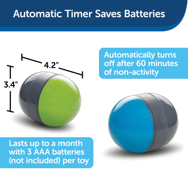 - Includes 2 Smart Toys – These paired toys encourage your dog to run back and forth as he tries to catch a moving squeak sound